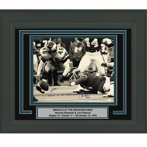 FRAMED Signed HERM EDWARDS PISARCIK Miracle The Meadowlands 16x20 Photo JSA COA