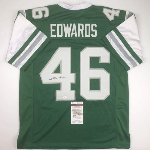 Autographed/Signed Herman Herm Edwards Philadelphia Green Jersey JSA COA