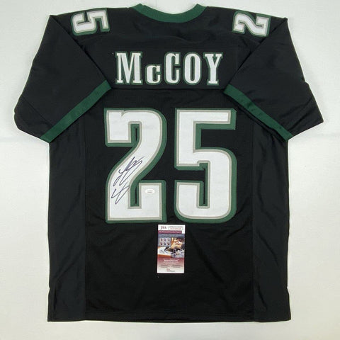 FRAMED Autographed/Signed LESEAN MCCOY 33x42 Philadelphia Black Jersey JSA COA