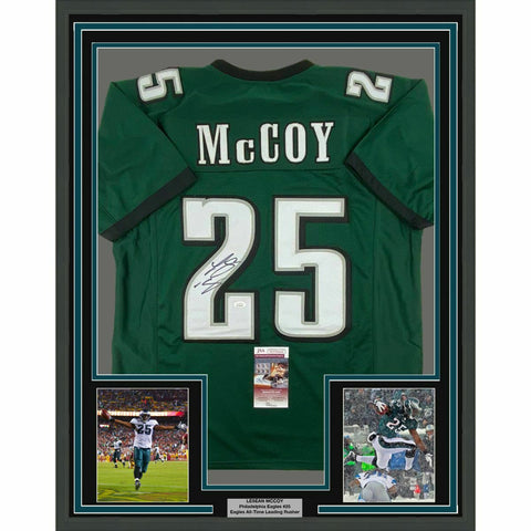 FRAMED Autographed/Signed LESEAN MCCOY 33x42 Philadelphia Green Jersey JSA COA