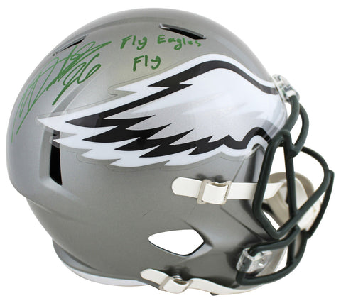 Eagles Miles Sanders "Fly Eagles Fly" Signed Flash F/S Speed Rep Helmet BAS Wit