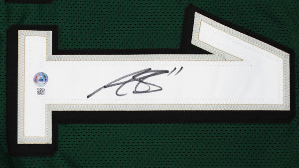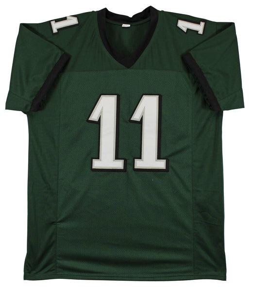 This Autographed Green Pro Style Jersey has been Personally Signed by A.J. Brown of the Philadelphia Eagles. This item is 100% Authentic to include a hologram by Beckett Authentication Services. This item may come with the new Beckett Authentication hologram that has a scannable QR code rather than the traditional COA. If you would like to have a COA, you are welcome to reach out to Beckett for a printed certification once you receive your item. This is a BAS Witnessed Protection Program item which means a Beckett Authentication Service representative was present when this item was being signed. We conducted an autograph signing with A.J. Brown where multiples of the same item were signed. While the photographs are representative of this item, the size, placement and strength of the signature may vary. Each item is hand signed, therefore, each autograph is unique. This item can be verified through BAS Witnessed. This is a X-Large sized, non-branded, custom-stitched Jersey.