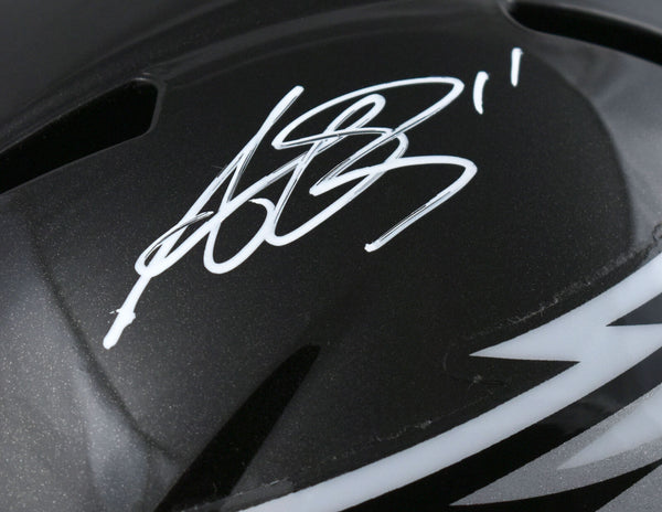 This is a hand autograph of A.J. Brown of the Philadelphia Eagles on a Riddell Football Alternate 2022 Full Size Speed Replica Helmet. This item has a Beckett Witness Authentication, which comes with a numbered hologram and a QR code for verification. You can view this item on the Beckett Authentication website and it shows when and where the item was signed. It was signed either at a public autograph appearance or a private signing. This is a stock photo of the item. Although you may not receive this exact item, the item you receive is virtually identical and brand new in great shape. This is a hand autograph of A.J. Brown of the Philadelphia Eagles on a Riddell Football Full Size Alternate 2022 Speed Replica Helmet. This item has a Beckett Witness Authentication, which comes with a numbered hologram and a QR code for verification. You can view this item on the Beckett Authentication website and it shows when and where the item was signed. It was signed either at a public autograph appearance or a private signing. This is a stock photo of the item. Although you may not receive this exact item, the item you receive is virtually identical and brand new in great shape.