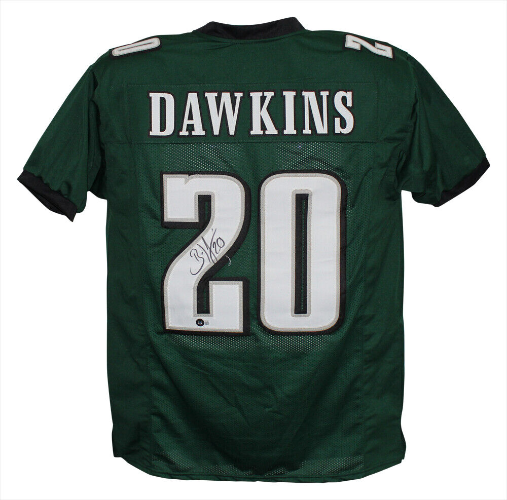The number in the listing title is just an inventory sku for our records and is not the authentication number. The item pictured is a stock photo unless otherwise noted. This is a Pro Style Green Size XL Jersey with sewn on numbers that was personally autographed by Brian Dawkins. Includes a certificate of authenticity from Beckett Authentication Services (BAS) and Denver Autographs.