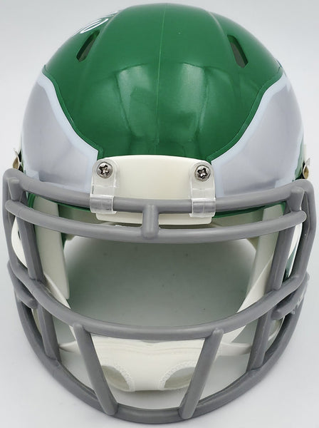 This is a Philadelphia Eagles 2023 Alternate Kelly Green Speed Mini Helmet that has been hand signed by DeSean Jackson. There is an imperfection in the signature as shown. This item has been witnessed and certified authentic by Beckett Authentication (BAS) and comes with their tamper-proof witness hologram.