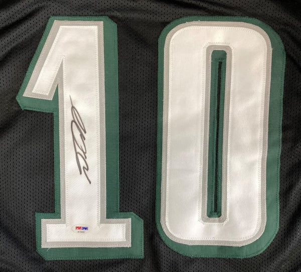 Featured is a DeSean Jackson signed custom football jersey. This jersey has been hand signed by Jackson and comes with the PSA/DNA hologram. This jersey features professionally sewn letters and numbers and is size XL. This jersey has no team tags or emblems and is intended as a sports collectible!. SPECIFICATIONS Autographed By: DeSean Jackson Team: Philadelphia Eagles Sport: Football Authentication: PSA/DNA Authentication Services