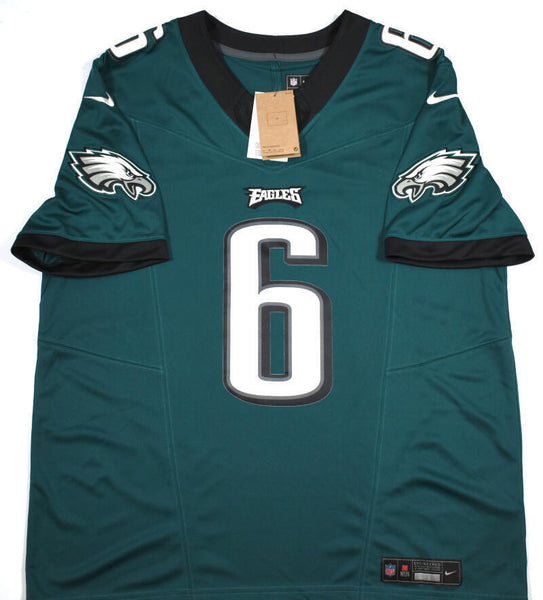 Devonta Smith Autographed Philadelphia Eagles Green Nike Vapor Limited Jersey - Fanatics *Black This is a Devonta Smith of the Philadelphia Eagles hand autographed Nike Vapor Limited jersey. This item has a Fanatics Authentication, which comes with a Fanatic numbered sticker hologram and QR code for verification. You can view this item on the Fanatic Authentication website to see when and where it was signed. It was signed either at a public autograph appearance or a private signing. This is a stock photo of the item. Although you may not receive this exact item, the item you receive is virtually identical, brand new, and in great shape. Jersey size is XL.