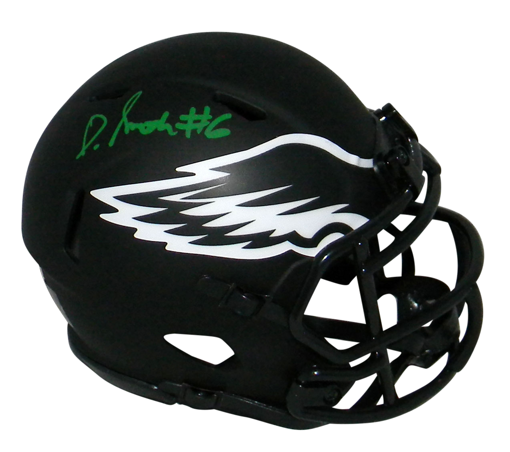 DeVonta Smith, the #10 overall pick for the Philadelphia Eagles, has hand signed this Eagles Riddell Speed Eclipse mini helmet at a private signing. This item is authenticated by Beckett Authentication Services, one of the best authenticators in the industry. Their tamper-evident hologram featuring a QR code and serial number is on the item. The authenticity can be verified online by entering the serial number or scanning the QR code.Item pictured may not be the exact item you will receive. It will be similar quality, and we guarantee your satisfaction.