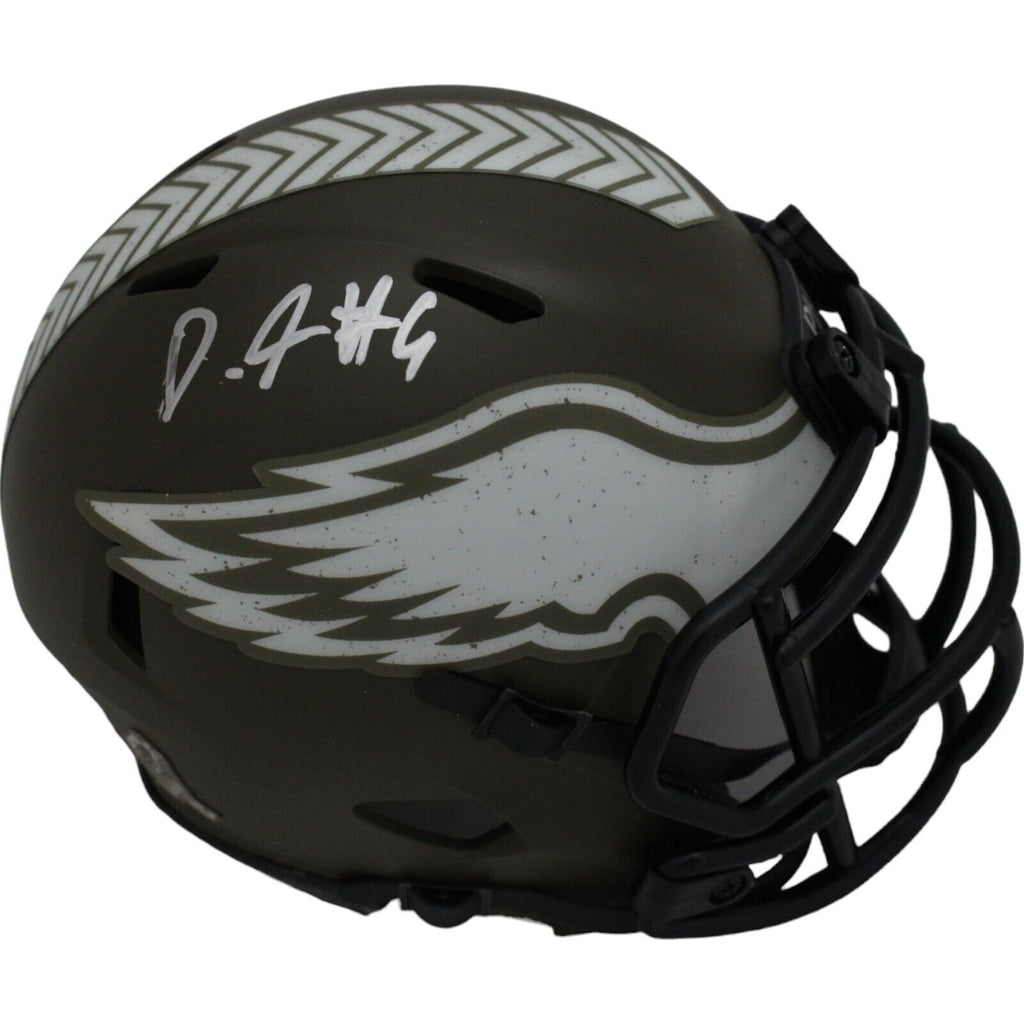 The number in the listing title is just an inventory sku for our records and is not the authentication number. The item pictured is a stock photo unless otherwise noted. This is a Philadelphia Eagles 2022 Salute to Service Mini Helmet that was personally autographed by Devonta Smith. Includes a certificate of authenticity from Fanatics Authentication (FAN) and Denver Autographs.FREE SHIPPING within the USA on orders over $10!