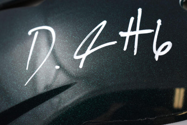 DeVonta Smith Autographed Philadelphia Eagles F/S Speed Authentic Helmet - Fanatics *White This is a hand autograph of DeVonta Smith of the Philadelphia Eagles on a Riddell Football Full Size Speed Authentic Helmet. This item has a Fanatics Authentication, which comes with a numbered sticker hologram and a QR code for verification. You can view this item on the Fanatics Authentication website and it shows when and where the item was signed. It was signed either at a public autograph appearance or a private signing. This is a stock photo of the item. Although you may not receive this exact item, the item you receive is virtually identical and brand new in great shape.