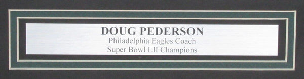 Doug Pederson Autographed 16x20 Photo Philadelphia Eagles Framed. The outer frame size is 22 inches x 29 inches. This photo is authenticated by Beckett and includes their Tamper-proof Hologram Sticker.
