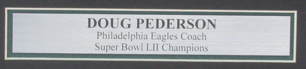 Doug Pederson Autographed Philadelphia Eagles 8x10 Photo Framed. The outer frame size is 13 inches x 16 inches. This photo is authenticated by Beckett and includes their Tamper-proof Hologram Sticker.