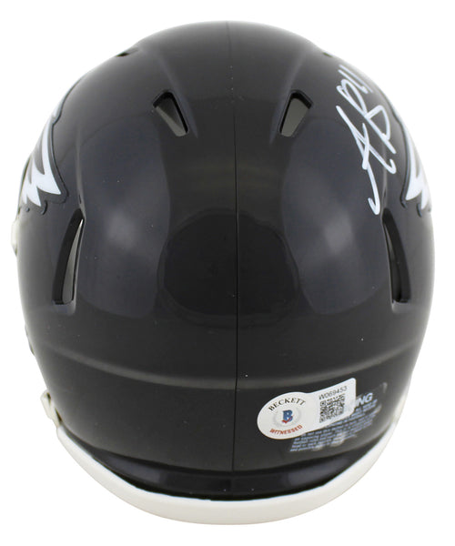 This Autographed Alternate 2022 Speed Mini Helmet has been Personally Signed by A.J. Brown of the Philadelphia Eagles. This item is 100% Authentic to include a hologram by Beckett Authentication Services. This item will come with the new Beckett Authentication hologram that has a scannable QR code rather than the traditional COA. If you would like to have a COA, you are welcome to reach out to Beckett for a printed certification once you receive your item. This is a BAS Witnessed Protection Program item which means a Beckett Authentication Service representative was present when this item was being signed. We conducted an autograph signing with A.J. Brown where multiples of the same item were signed. While the photographs are representative of this item, the size, placement and strength of the signature may vary. Each item is hand signed, therefore, each autograph is unique. This item can be verified through BAS Witnessed.