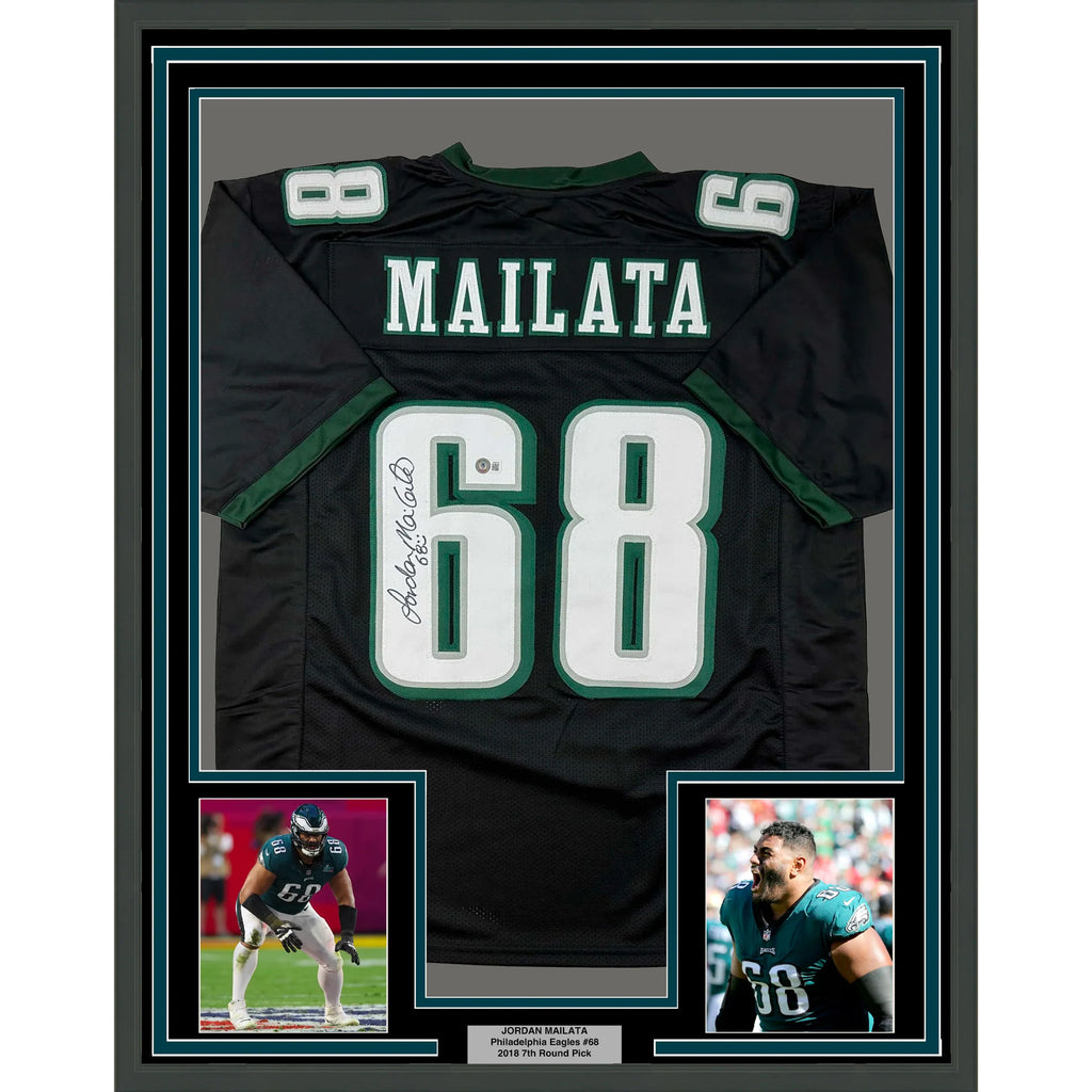 Framed Autographed/Signed Jordan Mailata 33x42 Philadelphia Black Jersey BAS COA The item is professionally framed and matted with two 5x7 photos, measures 35 inches by 39 inches and is ready to be hung in your man cave! Photo and matting requests can be made.