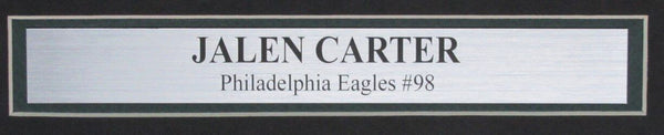 Jalen Carter Signed/Autographed 16x20 Photo Philadelphia Eagles Framed. The outer frame size is 22 inches x 26 inches. This photo is authenticated by PSA In-The-Presence and includes their tamper-proof hologram sticker.