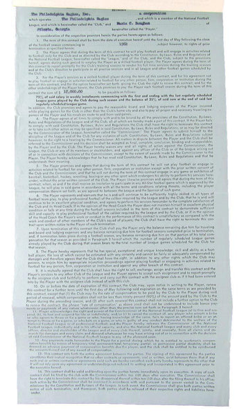 Maxie Baughan Philadelphia Eagles Signed/Autographed 1962 Contract. Official Players contract from the Baughn family. Super rare Eagles legend. This Contract is authenticated by JSA and includes their Tamper-proof Sticker and Certificate of Authenticity.