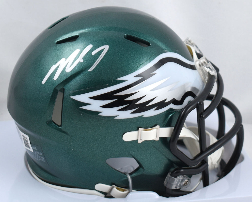 This is a hand autograph of Michael Vick of the Philadelphia Eagles on a Riddell Football Speed Mini Helmet. This item has a Beckett Witnessed Authentication, which comes with a numbered hologram and a QR code for verification. You can view this item on the Beckett Authentication website and it shows when and where the item was signed. It was signed either at a public autograph appearance or a private signing. This is a stock photo of the item. Although you may not receive this exact item, the item you receive is virtually identical and brand new in great shape. This is a hand autograph of Michael Vick of the Philadelphia Eagles on a Riddell Speed Mini Helmet. This item has a Beckett Witnessed Authentication, which comes with a numbered hologram and a QR code for verification. You can view this item on the Beckett Authentication website and it shows when and where the item was signed. It was signed either at a public autograph appearance or a private signing. This is a stock photo of the item. Although you may not receive this exact item, the item you receive is virtually identical and brand new in great shape.