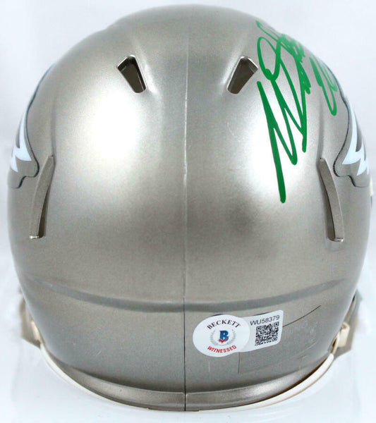 Miles Sanders Autographed Philadelphia Eagles Flash Speed Mini Helmet-Beckett W Hologram *Green This is a hand autograph of Miles Sanders of the Philadelphia Eagles on a Riddell Football Flash Speed Mini Helmet. This item has a Beckett Witness Authentication, which comes with a Beckett numbered hologram and a QR code for verification. You can view this item on the Beckett website and it shows when and where the item was signed. It was signed either at a public autograph appearance or a private signing. This is a stock photo of the item. Although you may not receive this exact item, the item you receive is virtually identical and brand new in great shape.