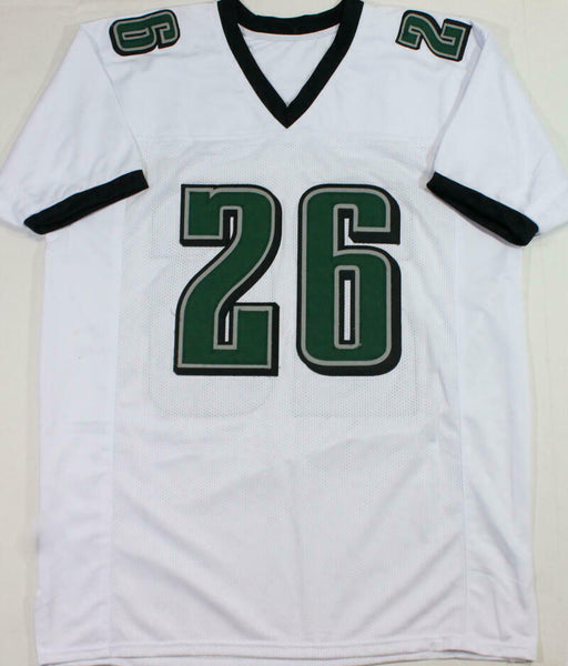 Miles Sanders Autographed White Pro Style Jersey - JSA W Auth *2 THIS IS NOT AN NFL JERSEY. THIS HAS NO TAGS, NO LOGOS, NO EMBLEMS. This is a hand autographed Jersey of Miles Sanders. This is Custom Made (non name brand) Authentic Style (stitched letters and numbers). This item has a James Spence Witness Protection Authentication, which comes with a numbered sticker and a matching JSA Certificate of Authenticity. You can view this item on the SpenceLOA website. It was signed either at a public autograph appearance or a private signing. This is a stock photo of the item. Although you may not receive this exact item, the item you receive is virtually identical and brand new in great shape. Jersey size is XL.