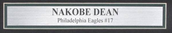 Nakobe Dean Autographed 11x14 Photo Framed Philadelphia Eagles. The outer dimensions of the frame are 22"x18". This photo is authenticated by PSA and includes their tamper-proof sticker.