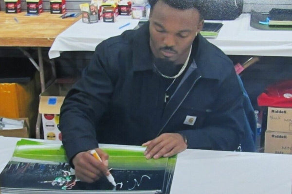 Nakobe Dean Autographed 16x20 Photo Philadelphia Eagles. This photo is authenticated by PSA and includes their tamper-proof sticker.
