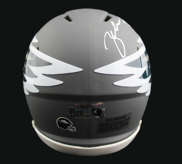 A Philadelphia Eagles Speed AMP NFL Mini Helmet hand signed by Zach Ertz. The item and signature are in excellent condition. Zach Ertz is a NFL tight end He was drafted 2nd round in the 2013 NFL Draft by the Philadelphia Eagles. Zach played college football at Stanford. He is a 2x Pro Bowler, and a Super Bowl (LII) Champion. AUTHENTICATION: The item is accompanied by a Zach Ertz/ Exclusive Certificate of Authenticity - Zach Ertz/ Exclusive Serial Numbered and Databased Hologram - Picture of Zach from the Signing -