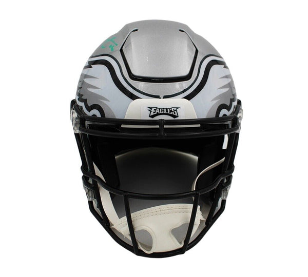 A Philadelphia Eagles Speed Flex Authentic Custom Gray/Green Fade NFL Helmet hand signed by Zach Ertz. The item and signature are in excellent condition. Zach Ertz is a NFL tight end. He was drafted in the 2nd round of the 2013 NFL Draft by the Philadelphia Eagles. Zach played college football at Stanford. He is a 2x Pro Bowler, and a Super Bowl (LII) Champion. AUTHENTICATION: The item is accompanied by a Zach Ertz Exclusive Certificate of Authenticity - Zach Ertz Exclusive Serial Numbered and Databased Hologram - Picture of Zach from the Signing