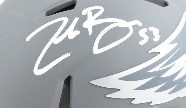 This is a hand autograph of Zack Baun of the Philadelphia Eagles on a Riddell Football Slate Speed Mini Helmet. This item has a Beckett Witnessed Authentication, which comes with a numbered hologram and a QR code for verification. You can view this item on the Beckett Authentication website and it shows when and where the item was signed. It was signed either at a public autograph appearance or a private signing. This is a stock photo of the item. Although you may not receive this exact item, the item you receive is virtually identical and brand new in great shape. This is a hand autograph of Zack Baun of the Philadelphia Eagles on a Riddell Football Slate Speed Mini Helmet. This item has a Beckett Witnessed Authentication, which comes with a numbered hologram and a QR code for verification. You can view this item on the Beckett Authentication website and it shows when and where the item was signed. It was signed either at a public autograph appearance or a private signing. This is a stock photo of the item. Although you may not receive this exact item, the item you receive is virtually identical and brand new in great shape.