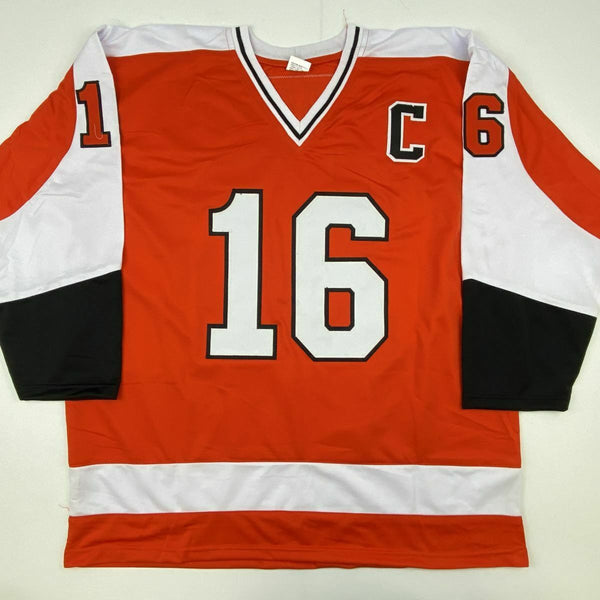 Autographed/Signed BOBBY BOB CLARKE Philadelphia Orange Stat Jersey JSA COA Auto This is a custom jersey and was not manufactured by or in any manner associated with any professional sports league or manufacturer. This custom jersey carries no professional sports league designation. The item is intended to be an autographed collectible. Reference of team in the title is to allow the purchaser a point of association. The custom jersey displays the name, number and authenticated signature of the player. This item in no way is affiliated with or connected to any professional sports organization. The autograph, as always is guaranteed to be authentic and has been certified as authentic by a third-party, trusted authenticator. Size is XL unless otherwise noted.
