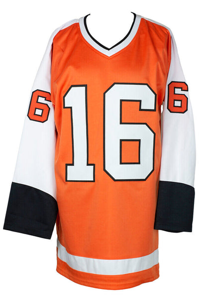 Custom on-ice style jersey. Everything is sewn on, size XL. Hand-signed and inscribed in black felt-tip pen by Bobby Clarke (HOF). The lot / autograph(s) includes an official James Spence Authentication (JSA) hologram and matching COA for authenticity purposes. The signing of this item was witnessed by JSA.Authentication: JSA COA