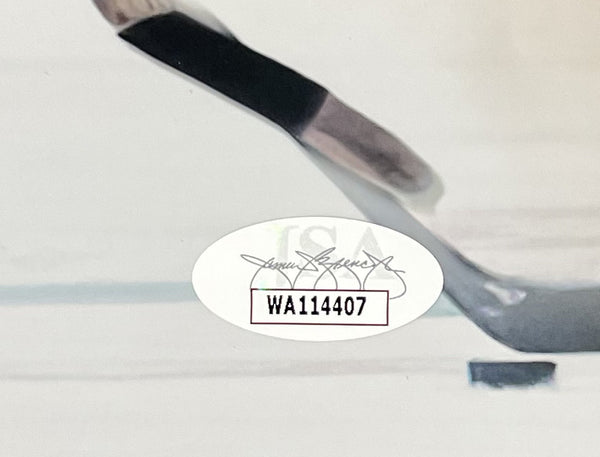 Featured is an Eric Lindros signed Philadelphia Flyers 11x14 photo in which he added the " HOF 16" inscription. This photo was handed signed by Eric Lindros in the presence of a JSA authentication representative. Included with the photo is a JSA hologram and certificate of authentication. This photo would make a great additional to any sports memorabilia collection.. SPECIFICATIONS Autographed By: Eric Lindros Team: Philadelphia Flyers Sport: Hockey Authentication: James Spence Authentication (JSA)