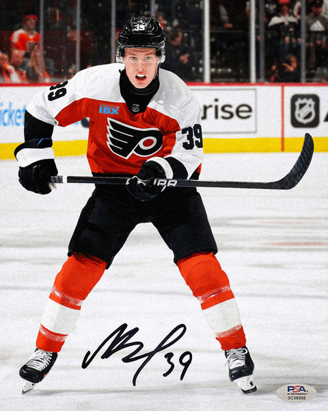 Matvei Michkov in Action Philadelphia Flyers Autographed 8x10 Hockey Photo PSA Signed photo from Flyers star Matvei Michkov; authenticated by PSA This photo has been hand-signed by the 2023 #7 overall draft pick Matvei Michkov. The autograph has been authenticated by Dynasty Sports & Framing. The photo has been signed during Matvei's first-ever public autograph signing on September 7, 2024. Hand-Signed by Flyers star Matvei MichkovSignature is bold and clear on the photoAuthenticated by PSA serially-numbered hologram