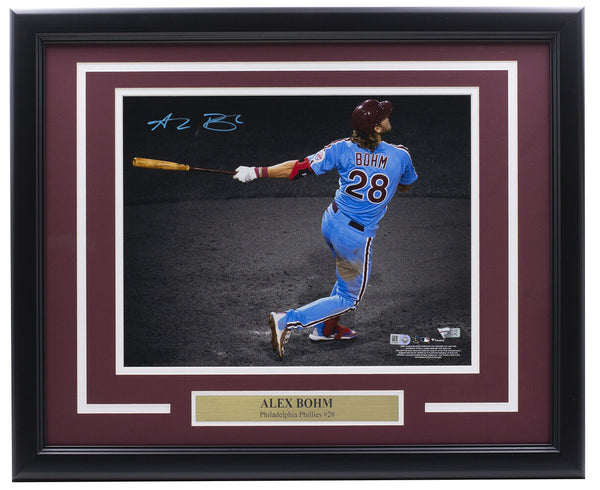 Featured is an Alec Bohm signed framed Philadelphia Phillies 11x14 photo. This photo was hand signed by Alec Bohm and authenticated by Fanatics authentication services. Included with the photo is a Fanatics hologram and certificate of authentication. The frame measures 16x20 in total size and is ready is for display. SPECIFICATIONS Autographed By: Alec Bohm Team: Philadelphia Phillies Sport: Baseball-MLB Authentication: Fanatics Authentic
