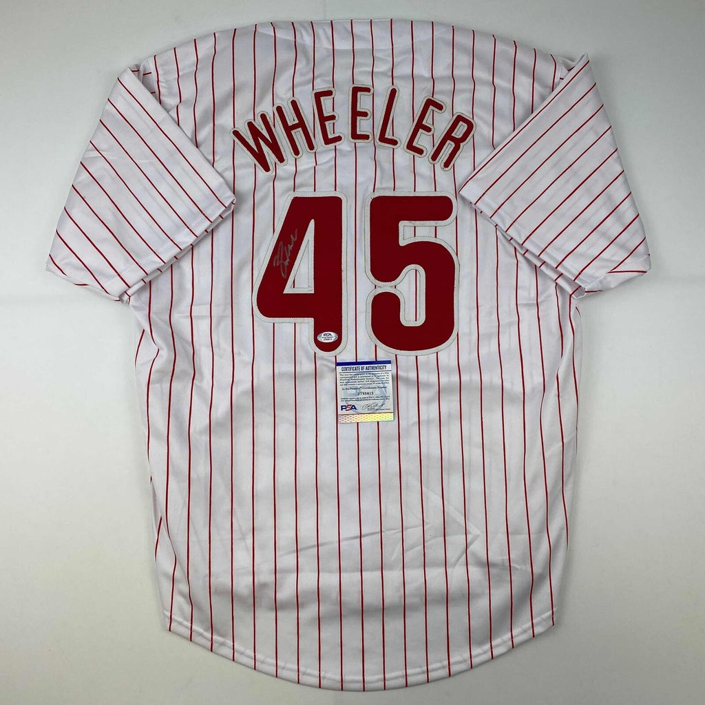 Autographed/Signed Zack Wheeler Philadelphia Pinstripe Jersey PSA/DNA COA Jersey has no brand names or logos. This is a custom jersey and was not manufactured by or in any manner associated with any professional sports league or manufacturer. This custom jersey carries no professional sports league designation. The item is intended to be an autographed collectible. The custom jersey displays the name and number of the player. This item in no way is affiliated with or connected to any professional sports organization. Size is XL.