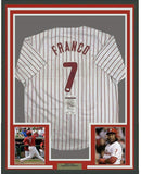 Framed Autographed/Signed Maikel Franco 33x42 Philly Pinstripe Jersey JSA COA