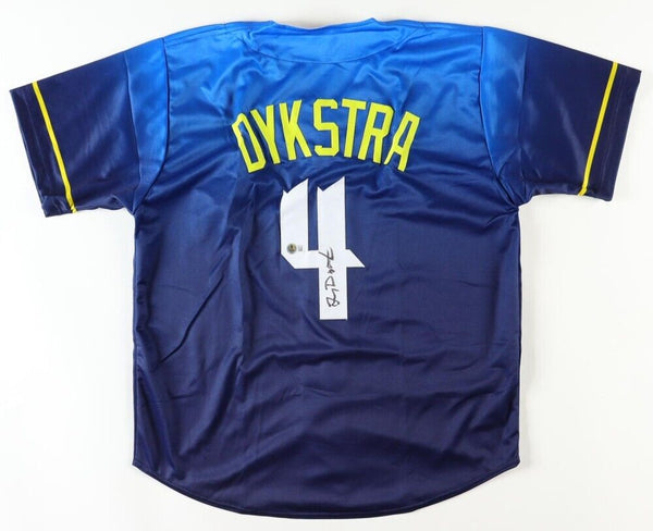 Custom on-field style jersey. Everything is sewn on, size XL. Hand-signed in black felt-tip pen by Lenny Dykstra. The autograph includes an official Beckett Authentication Services serially numbered hologram and QR Code Card for authenticity purposes. The signing of this item was witnessed by Beckett.Authentication: Beckett Hologram with QR Codr Card. Shop our ebay store / Confines Collectibles for thousands of different autographed jerseys