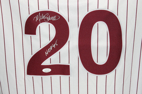 Mike Schmidt Autographed Phillies White Mitchell & Ness Jersey HOF JSA 28913 The number in the listing title is just an inventory sku for our records and is not the authentication number. This is a Philadelphia Phillies white Mitchell & Ness jersey that was personally autographed by Mike Schmidt with HOF inscription. Includes a certificate of authenticity from James Spence Authentication (JSA) and Denver Autographs.