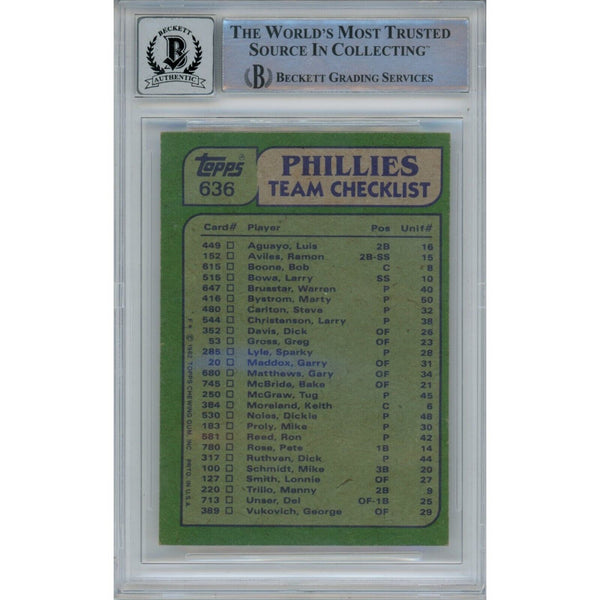 The number in the listing title is just an inventory sku for our records and is not the authentication number. The item pictured is a stock photo unless otherwise noted. This is a Philadelphia Phillies 1982 Topps #636 Slabbed Trading Card with a Grade 10 Autograph that was personally autographed by Pete Rose and Steve Carlton. Includes a certificate of authenticity from Beckett Authentication Services (BAS) and Denver Autographs.FREE SHIPPING within the USA on orders over $10!