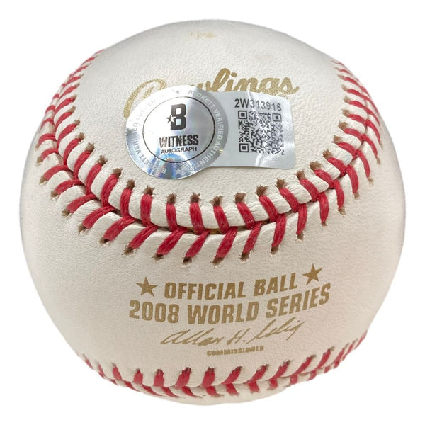 Featured is a Ryan Howard signed official 2008 World Series baseball. This ball has been hand signed by Howard and comes with the Beckett hologram and certificate of authenticity. This ball would make a great addition to any sports memorabilia collection! Please see photos prior to purchase regarding condition of baseball. SPECIFICATIONS Autographed By: Ryan Howard Team: Philadelphia Phillies Sport: Baseball Authentication: Beckett Grading Services