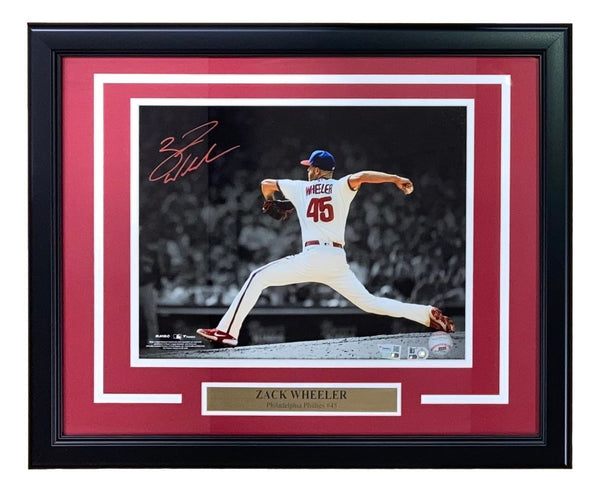 Featured is a Zack Wheeler signed 11x14 Philadelphia Phillies photo. This photo has been hand signed by Wheeler and comes with the Fanatics hologram and certificate of authenticity. This photo has been professionally framed and matted and is approximately 16x20. This photo would make a great addition to any sports memorabilia collection.. SPECIFICATIONS Autographed By: Zack Wheeler Team: Philadelphia Phillies Sport: Baseball Authentication: Fanatics Authentic