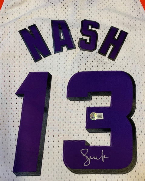 Steve Nash has autographed this official Phoenix jersey size XL. Autograph was witnessed and authenticated by Beckett Authentication Services (BAS). Simply scan the QR code hologram on your item to verify authenticity on their site.Stock image.