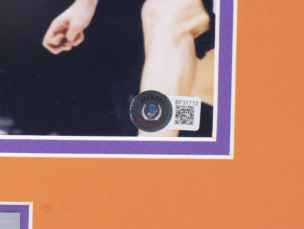 Featured is a Steve Nash signed framed 11x14 photo. This photo was hand signed by Steve Nash and authenticated by Beckett authentication services. Included with the photo is a Beckett hologram only and certificate of authenticity. The frame measures 16x20 in total size and is ready is for display. SPECIFICATIONS Autographed By: Steve Nash Team: Phoenix Suns Sport: Basketball-NBA Authentication: Beckett Grading Services