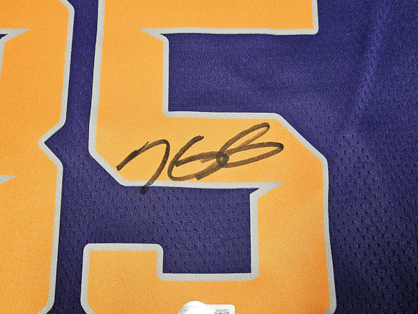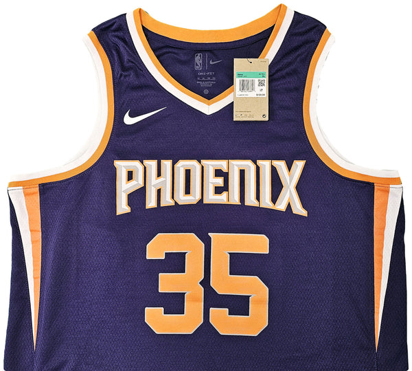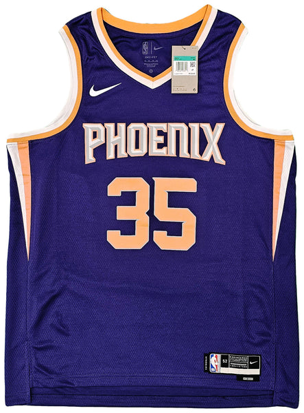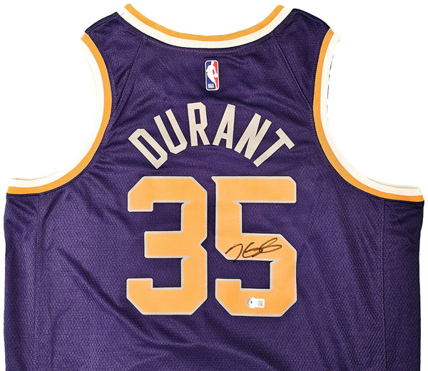 This is a Purple Nike Icon Edition Phoenix Suns Jersey that has been hand signed by Kevin Durant. This jersey is Size 52. This item has been certified authentic by Beckett Authentication (BAS) and comes with their tamper-proof QR Code sticker that can be verified on beckett-authentication.com.