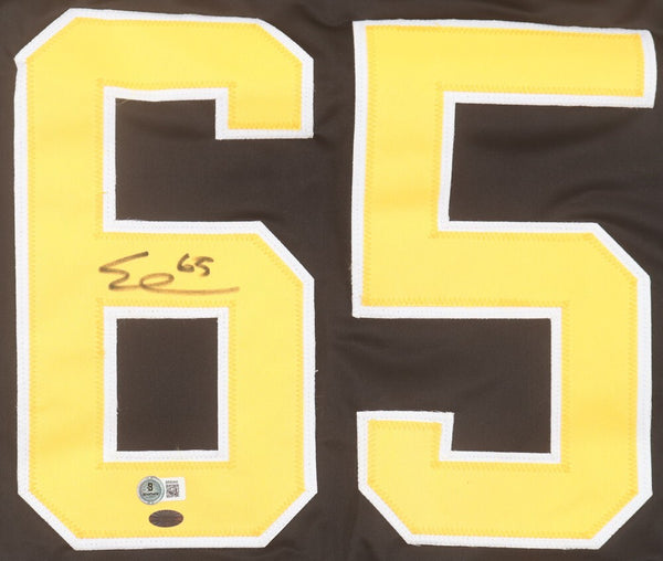 Custom on-ice style jersey. Everything sewn on, size adult XL. Hand-signed by Erik Karlsson.The autograph includes an official Beckett Authentication Services serially numbered hologram and QR Code card for authenticity purposes.Authentication: Beckett Hologram with QR Code card