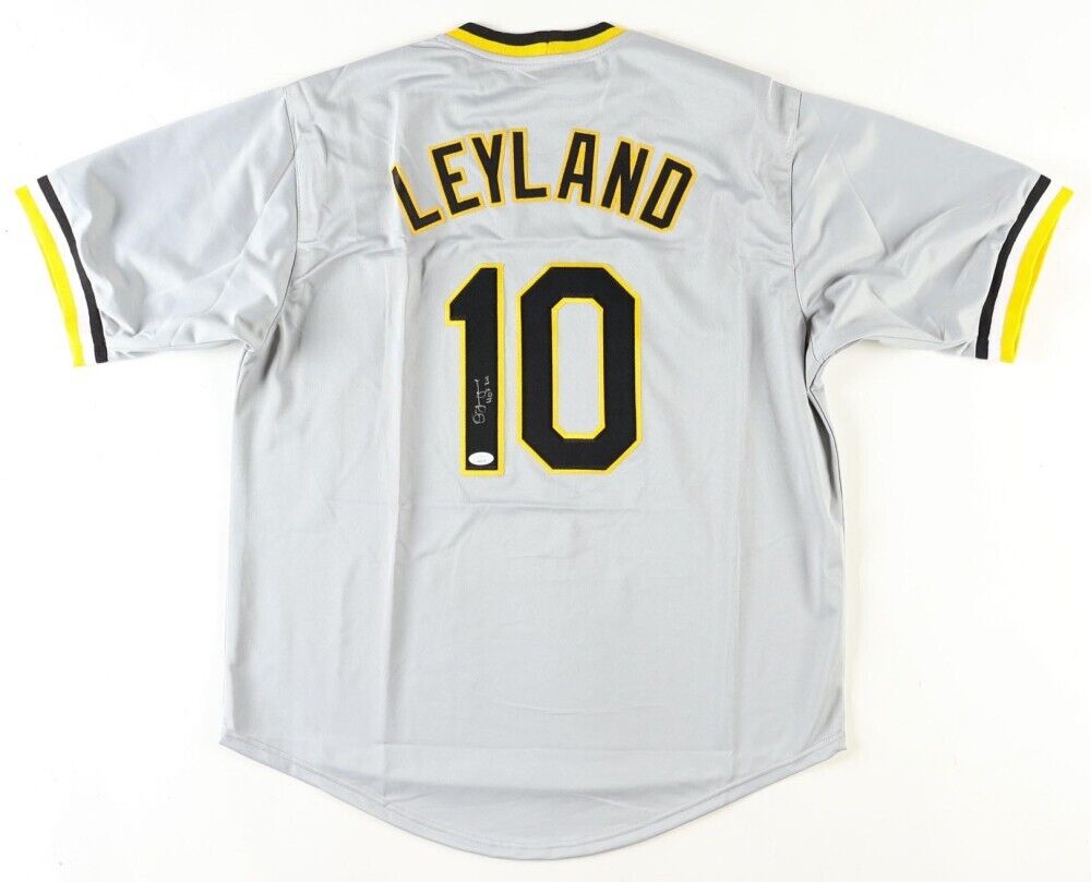 Custom on-field style jersey. Everything is sewn on, size XL. Hand-signed and Inscribed in silver paint pen by Jim Leyland. The lot / autograph(s) includes an official James Spence Authentication (JSA) hologram and matching COA for authenticity purposes. The signing of this item was witnessed by JSA.Authentication: JSA COA