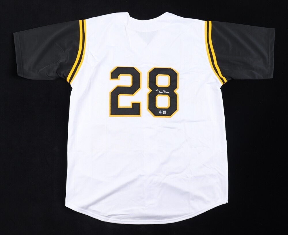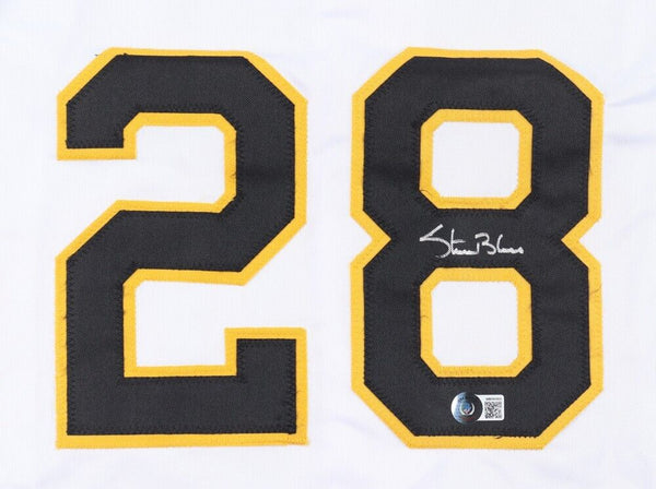 Custom on-field style jersey. Everything is sewn on, size XL. Hand-signed and inscribed by Steve Blass.The autograph includes an official Beckett Authentication Services serially numbered hologram for authenticity purposes. The signing of this item was witnessed by Beckett.Authentication: Beckett HologramCustom on-field style jerseys are a more affordable option for autograph seekers. These jerseys do not have any brand name or tags and are made in the Philippines. They feature stitched on names and numbers and are made to look very similar to the on-field jerseys that the players wear. These custom jerseys are very commonly used in the memorabilia industry. Shop our eBay store / Friendly Confines Collectibles for thousands of different autographed jerseys