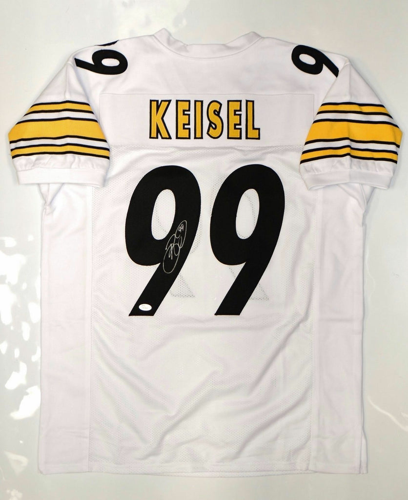THIS IS NOT AN NFL JERSEY. This HAS NO TAGS, NO LOGOS, NO EMBLEMS. This is a Autographed Jersey Signed by Brett Keisel. This is Custom Made (Non Name Brand) Authentic Style (Stitched Letters and Numbers) Jersey. This item has a James Spence Witness Authentication, which comes with a JSA numbered sticker and a matching JSA COA. You can view this item on the SpenceLOA website, it shows when and where the item was signed. It was signed either at a public autograph appearance or a Private Signing. This is a stock photo of the item. Although you may not receive this exact item, the item you receive is virtually identical and brand new in great shape. Jersey size is XL. THIS IS NOT AN NFL JERSEY. This HAS NO TAGS, NO LOGOS, NO EMBLEMS. This is a Autographed Jersey Signed by Brett Keisel. This is Custom Made (Non Name Brand) Authentic Style (Stitched Letters and Numbers) Jersey. This item has a James Spence Witness Authentication, which comes with a JSA numbered sticker and a matching JSA COA. You can view this item on the SpenceLOA website, it shows when and where the item was signed. It was signed either at a public autograph appearance or a Private Signing. This is a stock photo of the item. Although you may not receive this exact item, the item you receive is virtually identical and brand new in great shape. Jersey size is XL.