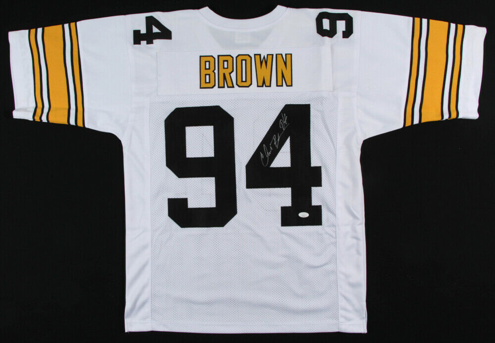 Custom on-field style jersey. Everything sewn on, size XL. Hand-signed by Chad Brown.The lot / autograph(s) includes an official James Spence Authentication (JSA) hologram and matching COA for authenticity purposes.Authentication: JSA COA