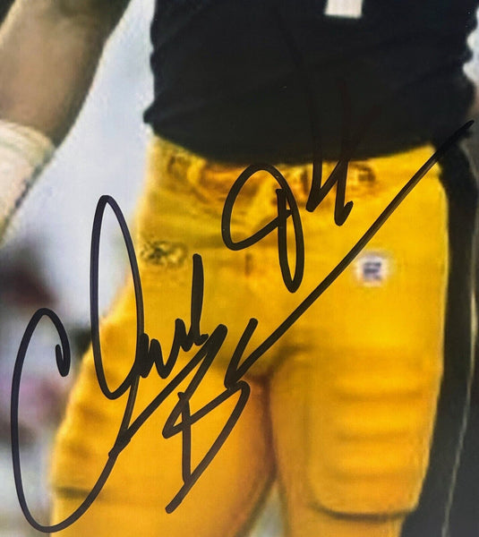 The product is an autographed 8x10 photograph of Chad Brown from the Pittsburgh Steelers. It is an original autograph authenticated by James Spence Authentication (JSA).