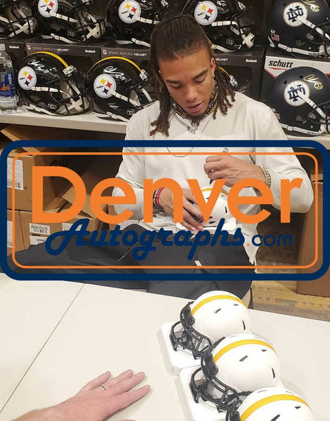 Chase Claypool Autographed Pittsburgh Steelers Lunar Mini Helmet BAS 30861 The number in the listing title is just an inventory sku for our records and is not the authentication number. This is a Pittsburgh Steelers Lunar mini helmet that was personally autographed by Chase Claypool. Includes a certificate of authenticity from Beckett Authentication Services (BAS) and Denver Autographs.
